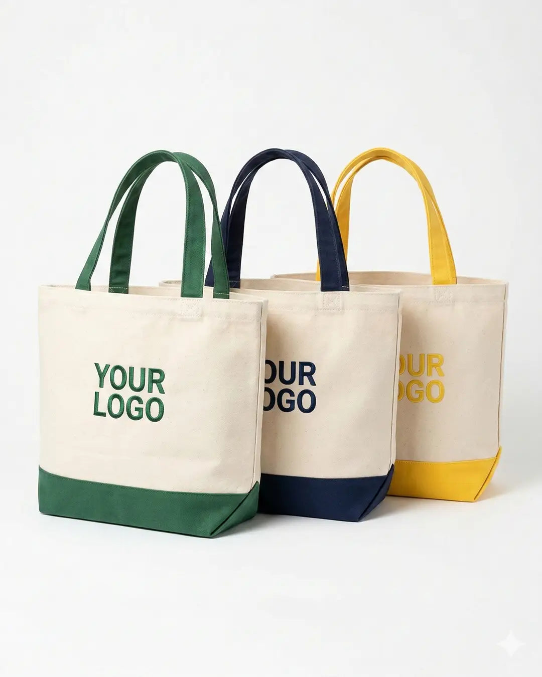 Custom logo tote bags for events, retail promotions, and branded merchandise.